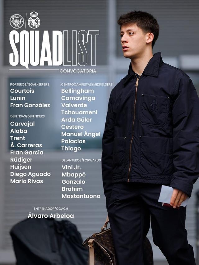 皇家马德里官方公布了欧冠1/8决赛次回合客场对阵曼城的比赛大名单,姆巴佩、贝林厄姆、卡雷拉斯回归。